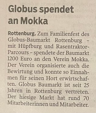 Wir bedanken uns ganz herzlich bei Globus Baumarkt in Rottenburg!