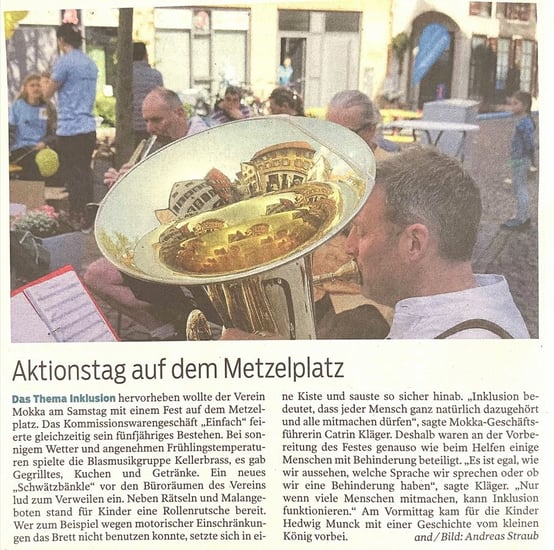 So war ein besonderer Meilenstein sicher die Eröffnung unserer zentral in der Innenstadt gelegene Beratungsstelle FeDi – diese ist eine Anlaufstelle für alle Ratsuchenden mit Fragen und Themen rund um das Leben mit einer Behinderung, egal ob körperlich, geistig oder seelisch. Mit unserer Inklusionsgruppe waren wir bei Konzerten und natürlich fand immer donnerstags im Haus der Bürgerwache unser Kegeltreff statt. Beim Inklusionstag auf dem Metzelplatz entstand ein Kurzfilm mit dem Titel „Mittendrin statt nur dabei“. Gäste konnten auf dem Schwätzbänkle Platz nehmen und sich zum Thema Inklusion austauschen.